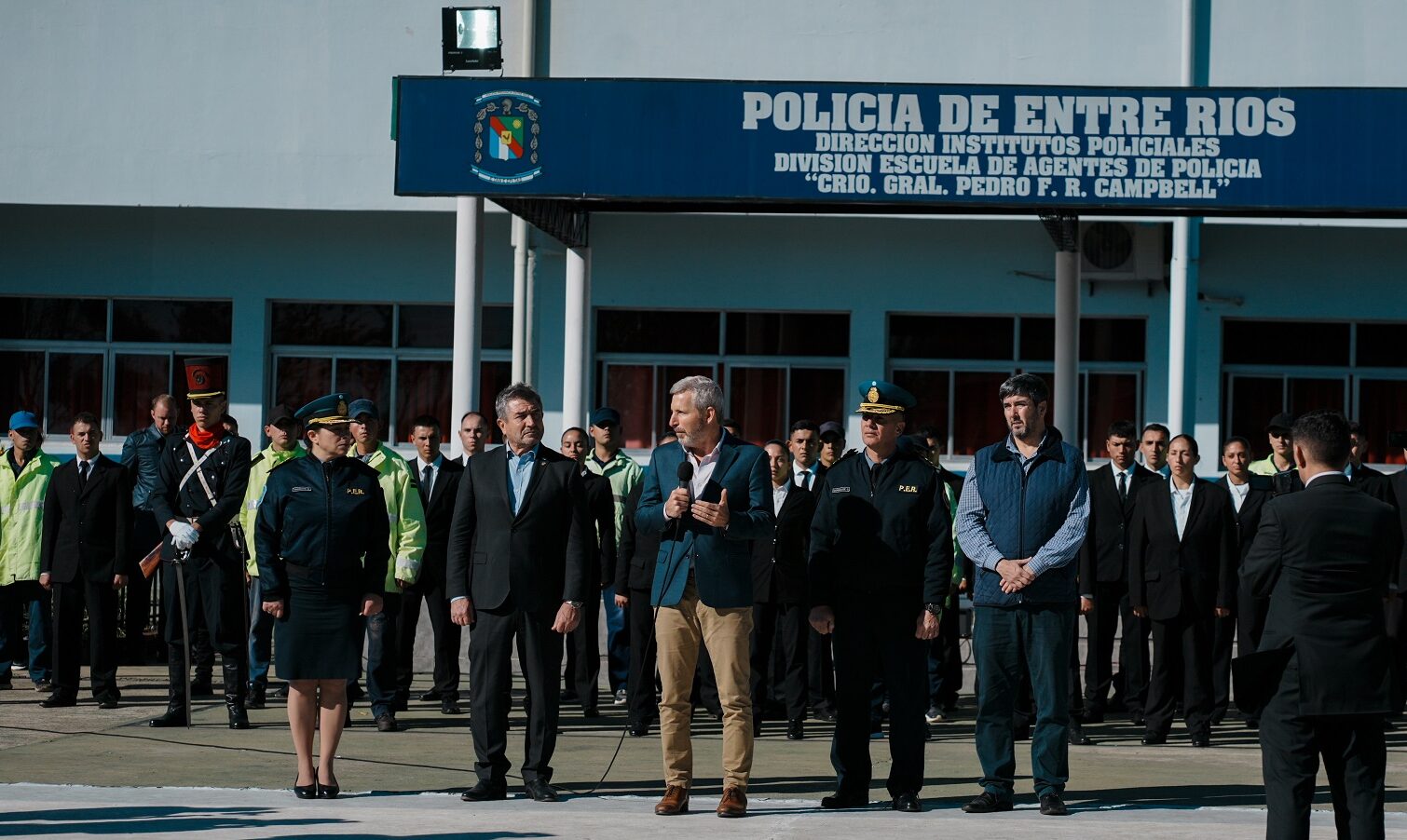 «Necesitamos que nuestra Policía, que la Policía de Entre Ríos, que tanto orgullo nos genera, esté en la calle cuidando a los vecinos; que recuperemos un patrimonio de los entrerrianos, que es la paz. Saber que podemos dormir tranquilos y que nuestras cuestiones más preciadas como la vida de nuestros seres queridos, también nuestros patrimonios están bien cuidados por esta fuerza», dijo el gobernador para finalizar su discurso.