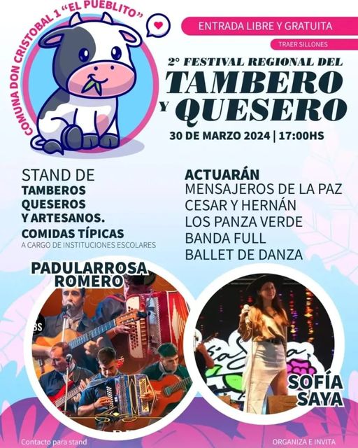 Será en Don Cristóbal Primera, (El Pueblito), organizado por la comuna del lugar. Confirmaron la cartelera y la entrada será libre y gratuita.