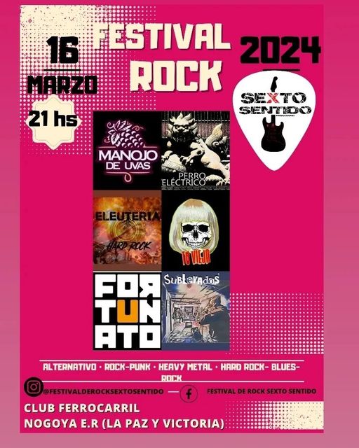 Este sábado 16 de marzo se realizará una nueva edición del Festival de Rock Sexto Sentido y contará con la presencia de importantes bandas de la ciudad y la región, entre lo alternativo, el pop rock, punk, heavy metal, hard rock y blues.